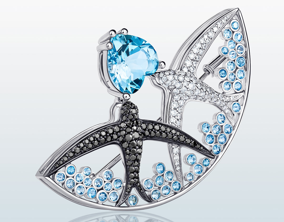 Jewelry retouching of a brooch with stones